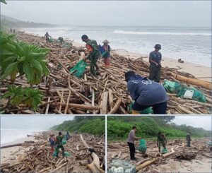 BANYUWANGI – Kelestarian ekosistem pesisir di kawasan Taman Nasional Alas Purwo menjadi perhatian serius berbagai pihak. kolaborasi lintas sektor yang melibatkan TNI, Polri, dan komunitas lingkungan Sungai Watch berhasil mengangkut ratusan kilogram sampah dalam aksi Clean Up yang dipusatkan di sekitar Pantai Pancur, Desa Kalipait, Kecamatan Tegaldlimo. Selasa pagi (03/03/2026),