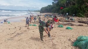 BANYUWANGI – Dalam upaya menjaga kelestarian ekosistem pesisir dan kawasan konservasi, Yayasan Sungai Watch bersama jajaran pimpinan wilayah Kecamatan Tegaldlimo, Balai Taman Nasional Alas Purwo, dan berbagai instansi terkait menggelar aksi “Emergency Clean-Up” di Pantai Pancur, Desa Kalipait, Kabupaten Banyuwangi, pada Selasa (06/01/2026).
