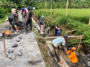 Anggota Satgas TNI Manunggal Membangun Desa (TMMD) ke-126 Kodim 0818/Malang-Batu terus menunjukkan dedikasi tinggi dalam melaksanakan pekerjaan peningkatan saluran irigasi di Desa Lebakharjo, Kecamatan Ampelgading, Kabupaten Malang. Kegiatan ini merupakan salah satu sasaran fisik utama dalam program TMMD yang bertujuan untuk meningkatkan kesejahteraan masyarakat melalui pembangunan infrastruktur pertanian.