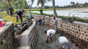 Pembersihan saluran irigasi ini memiliki peran strategis dalam mendukung produktivitas lahan pertanian masyarakat, mengingat kelancaran aliran air irigasi sangat menentukan keberhasilan panen. Sementara itu, perbaikan jalan berlubang diharapkan dapat memperlancar mobilitas warga dan distribusi hasil pertanian, sehingga aktivitas ekonomi produktif masyarakat dapat berjalan lebih optimal.