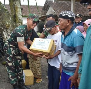 Selain mengawasi langsung berbagai kegiatan pembangunan infrastruktur seperti pembuatan drainase dan perbaikan jalan, Letkol CZI Bayu Nugroho turut menyerahkan paket sembako kepada warga lanjut usia dan masyarakat kurang mampu di sekitar lokasi TMMD. Aksi sosial ini dilakukan sebagai bentuk kepedulian TNI terhadap kondisi masyarakat desa yang masih membutuhkan perhatian, terutama dalam memenuhi kebutuhan pokok sehari-hari.