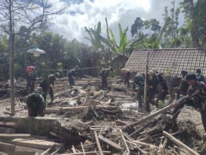 “Hari ini kami bersama adik-adik Saka Wira Pramuka turun langsung membantu membersihkan rumah warga yang terdampak. Kondisi di lapangan memang cukup berat karena banyak material lahar yang mengeras, namun dengan kebersamaan semua bisa kita selesaikan. Kami ingin masyarakat merasa tidak sendiri. TNI akan selalu ada untuk membantu,” ungkap dia.