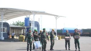 BANYUWANGI – Kepedulian nyata ditunjukkan personel Kodim 0825/Banyuwangi bersama unsur gabungan di kawasan Pelabuhan ASDP Ketapang, Kecamatan Kalipuro, Kabupaten Banyuwangi, Jumat (3/4/2026) pagi. Di tengah aktivitas lalu lintas yang masih padat, para prajurit turun langsung ke lapangan membagikan bantuan berupa air mineral dan roti kepada sopir truk serta masyarakat. Kegiatan ini menjadi wujud respons cepat TNI dalam membantu warga yang tengah beraktivitas di jalur menuju pelabuhan.