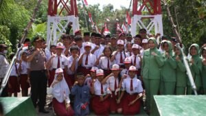 “Jembatan ini dibangun 24 jam setiap harinya dan berhasil rampung hanya dalam waktu 41 hari melalui semangat gotong royong antara TNI dan masyarakat setempat. Ini adalah bukti nyata bahwa negara hadir untuk rakyat, khususnya untuk mempermudah akses anak-anak sekolah dan para santri agar tidak lagi menempuh waktu lama atau bertaruh nyawa menyeberangi sungai,” ujar Letkol Tryadi.