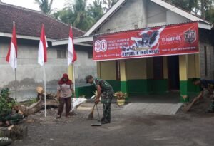 Nampak sekilas, sejumlah anggota prajurit TNI tengah membersihkan halaman depan rumah Ibu Sulami, candaan tawa dan kedekatakan mereka bersama warga mencerminkan sebuah keluarga.