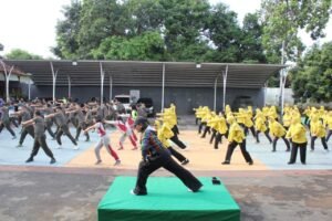 BANYUWANGI – Suasana ceria memenuhi Lapangan Hitam Makodim 0825 Banyuwangi di Jalan RA Kartini No. 02 Kepatihan pada Selasa (18/11/2025) saat Persit Kartika Chandra Kirana Cabang XXXIX melaksanakan kegiatan senam bersama. Kegiatan ini digelar sebagai upaya menjaga kebugaran jasmani sekaligus mempererat ikatan kekeluargaan di lingkungan Persit. Para peserta terlihat antusias mengikuti setiap gerakan senam yang dipandu instruktur.