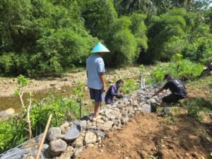Suasana gotong royong yang sarat makna kemanusiaan tampak jelas di lokasi. Warga desa tanpa ragu ikut serta mengangkut batu dan menganyam kawat bronjong, menunjukkan semangat kemanunggalan TNI-Rakyat yang menjadi ruh utama TMMD. Bapak Toha, salah satu tokoh masyarakat setempat, menyampaikan rasa terima kasih. “Dulu kami selalu khawatir tebing ini longsor. Sekarang, dengan bantuan Bapak-bapak TNI, kami merasa jauh lebih tenang. Semangat gotong royong ini sungguh menghidupkan kembali kebersamaan di desa kami,” ungkapnya.