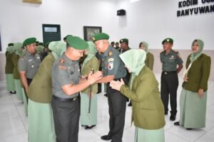 Banyuwangi – Kodim 0825/Banyuwangi kembali melakukan penyegaran struktur kepemimpinan melalui Serah Terima Jabatan (Sertijab) para Danramil jajaran, Selasa (18/11/2025). Kegiatan yang dipimpin langsung oleh Dandim 0825/Banyuwangi Letkol Arm Tryadi Indrawijaya, S.H., M.I.P. ini berlangsung khidmat di Aula Panglima Sudirman Makodim, Jalan RA Kartini Nomor 02, Kepatihan, Banyuwangi. Sertijab tersebut menjadi langkah penting untuk memperkuat efektifitas komando di wilayah teritorial.