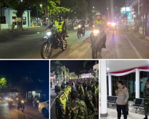 BANYUWANGI – Soliditas TNI dan Polri kembali ditunjukkan melalui patroli gabungan skala besar yang digelar di wilayah hukum Polresta Banyuwangi, Minggu (31/8/2025) malam. Ratusan personel gabungan dari Polresta Banyuwangi, Kodim 0825, Lanal Banyuwangi, serta Puslatpurmar 7 Lampon, diturunkan untuk mengamankan wilayah dan memberikan rasa tenang kepada masyarakat.